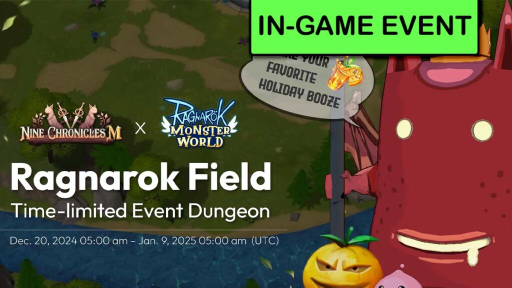 đ Event Summary: Unveiling the 9C x Ragmon Event Dungeon! This exclusive collaboration event between Nine Chronicles and Ragnarok: Monster World introduces the special Ragnarok Fields dungeon, where you can farm rare materials and craft the powerful dish RaGlenFiddich 99 Vintage. Complete missions in both games to earn amazing rewards!