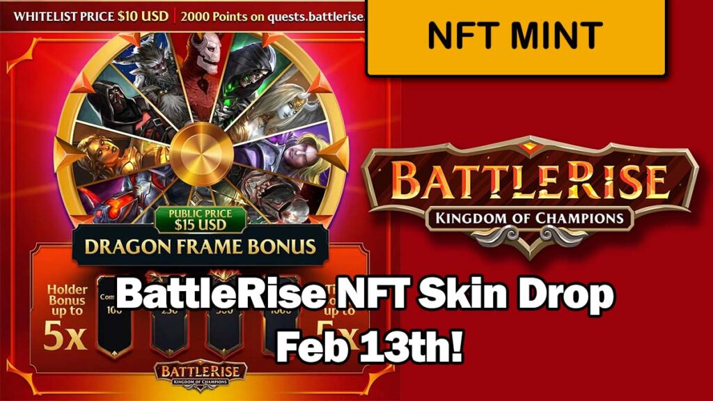- Phase 1 (Whitelist): $10 per NFT (or 2,000 Points from quests.battlerise.com)