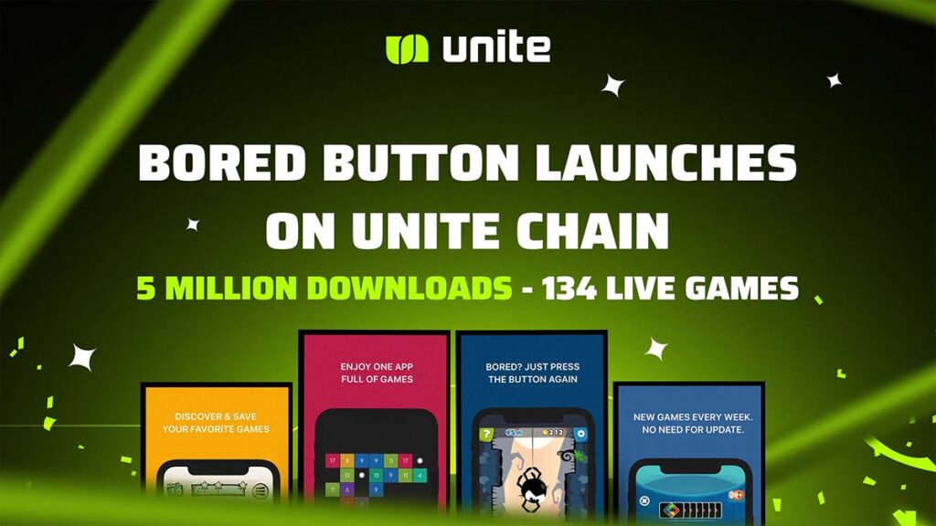 - Bored Button, with over 5 million downloads and 134 games, is expanding into Web3 through its deployment on the Unite L3 mainnet. This integration enables players to earn rewards, collect in-game assets, and experience blockchain-powered gameplay seamlessly. Players can access new features like in-game achievements, secure trading, and fair competition, all while enjoying the app’s simple, personalized gaming experience.