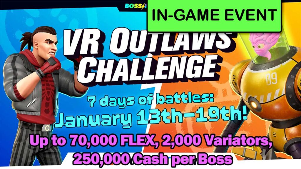 đ Event Summary: Join the Boss Fighters Outlaws Challenge! Battle VR Bosses over seven days to claim your share of massive prize pools. Take on an extra challenge to defeat the CEO for special rewards.