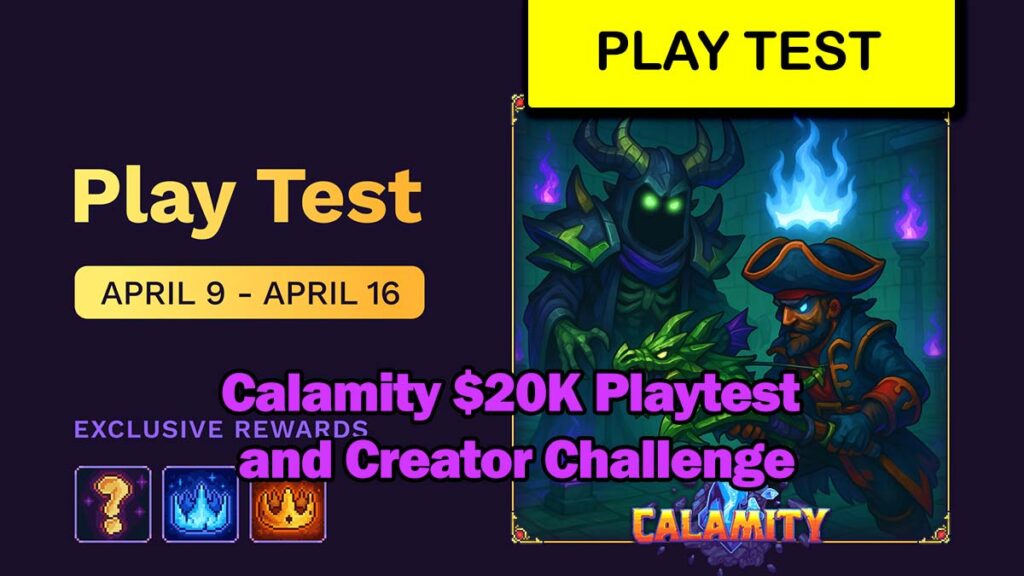 ๐ Event Summary: Join the Calamity Incentivized Playtest for a shot at $20,000+ in rewards, exclusive cosmetic NFTs, and a leaderboard challenge! Compete in-game or shine as a content creator to earn [REDACTED] Mystery Assets and rare skins.