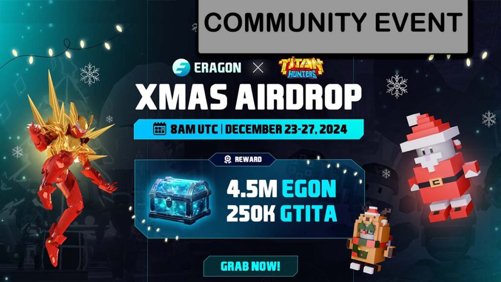 đ Event Summary: Celebrate the ERAGON x Titan Hunter Xmas Airdrop with 4.5M EGON + 250K GTITA up for grabs! Complete tasks to earn a share of the prize pool in this strategic collaboration between Titan Hunters and ERAGON.