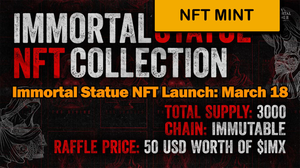 π About Event: The Immortal Statue NFT Collection is launching soon, with just one week left! Get ready for the chance to claim your piece of the Immortal universe through a public raffle. Only 3,000 NFTs are available, so donβt miss your shot to step up and stake your claim.