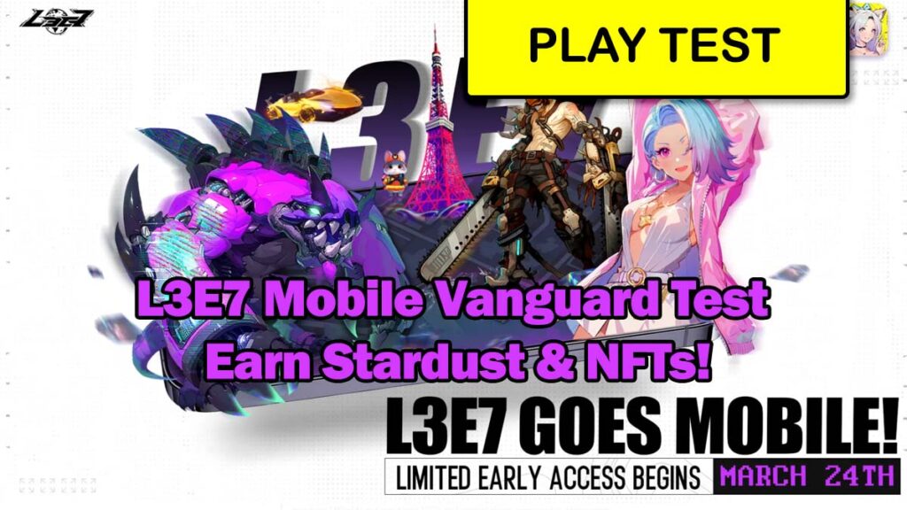 đ Event Summary: Join the Mobile Vanguard Test for L3E7, a closed beta test on Android, Windows, and Mac! Players can earn Stardust rewards, purchase in-game items with crypto, and compete for leaderboard-based NFT rewards.