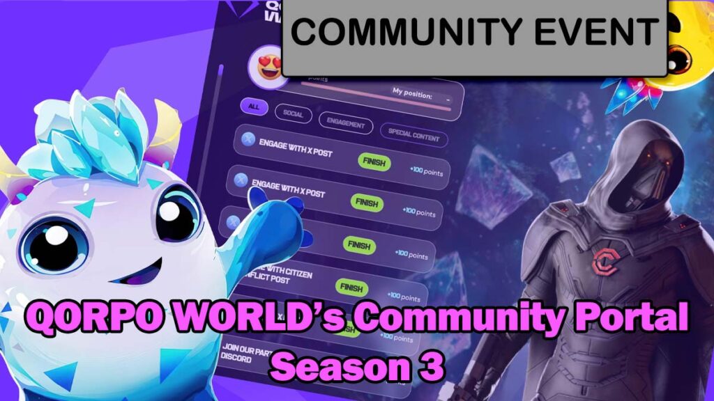 📄 Event Summary: Join QORPO WORLD’s Community Portal Season 3 by completing daily social tasks and missions to earn XP and climb the leaderboard. Top participants will share a massive 100,000 $QORPO prize pool!