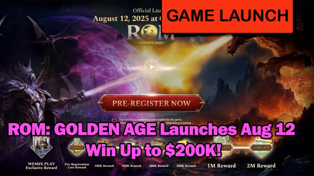 ROM: GOLDEN AGE officially launches on August 12, 2025 at 06:00 (UTC+0), with pre-registration now open on WEMIX PLAY! Players can also join the Buddy Boost Lottery for a chance to win a share of $200,000.