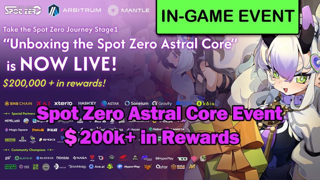 đ Event Summary: Take the Spot Zero Journey, powered by Arbitrum and Mantle, and experience the Spot Zero universe early. Unlock rewards, play mini-games, and collect rare NFTs, including a chance to win from the 180,000 Gacha Tickets available!