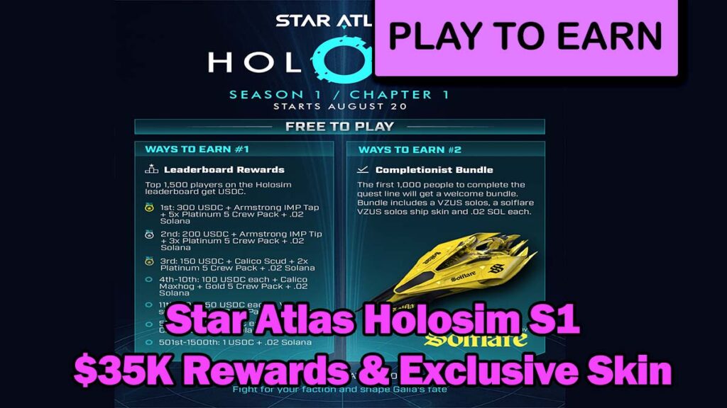 ๐ Event Summary: Join Holosimโa free-to-play browser-based space strategy game by Star Atlasโstarting August 20 for a chance to win $5,000 USDC, $30,000 in in-game Star Atlas assets, and an exclusive ship skin. Compete in leaderboard challenges or complete quests to earn rewards.