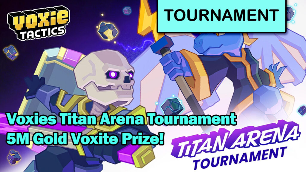 ๐ Event Summary: Compete in Voxie Tacticsโ first Titan Arena Tournament and battle for 5M Gold Voxite (50,000 VOXEL) plus 3 Voxies NFTs! Choose from 21 pre-equipped Titan Voxies and climb the leaderboards for rank-based rewards.